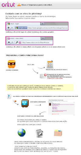 Ninguém tem dúvidas de que o Orkut foi uma das melhores idéias para encontrar amigos, falar sobre você, participar de discussões em comunidades, etc. Porém, como todos os recursos da internet, o Orkut também tem seus riscos de segurança, riscos esses proporcionados por pessoas de má fé que às vezes querem apenas incomodar, porém em outras querem informações pessoais e preciosas dos usuários.